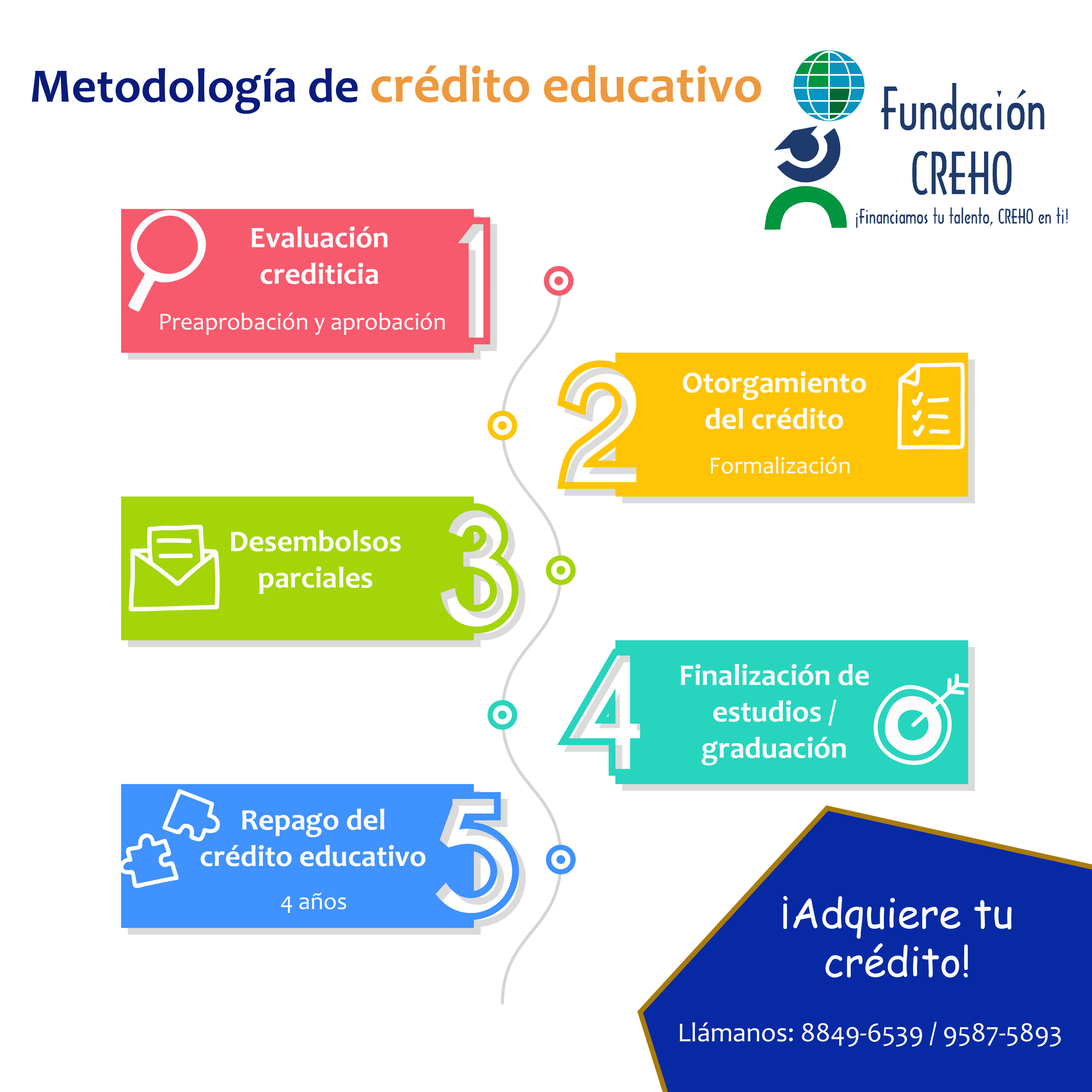 Mediante el crédito para estudio, damos cobertura al 100% de los costos de las diferentes carreras universitarias a nivel nacional e internacional, implementando una ventaja competitiva en las formas de pago y cuotas que son adecuadas al presupuesto de los beneficiarios o sus padres de familia.