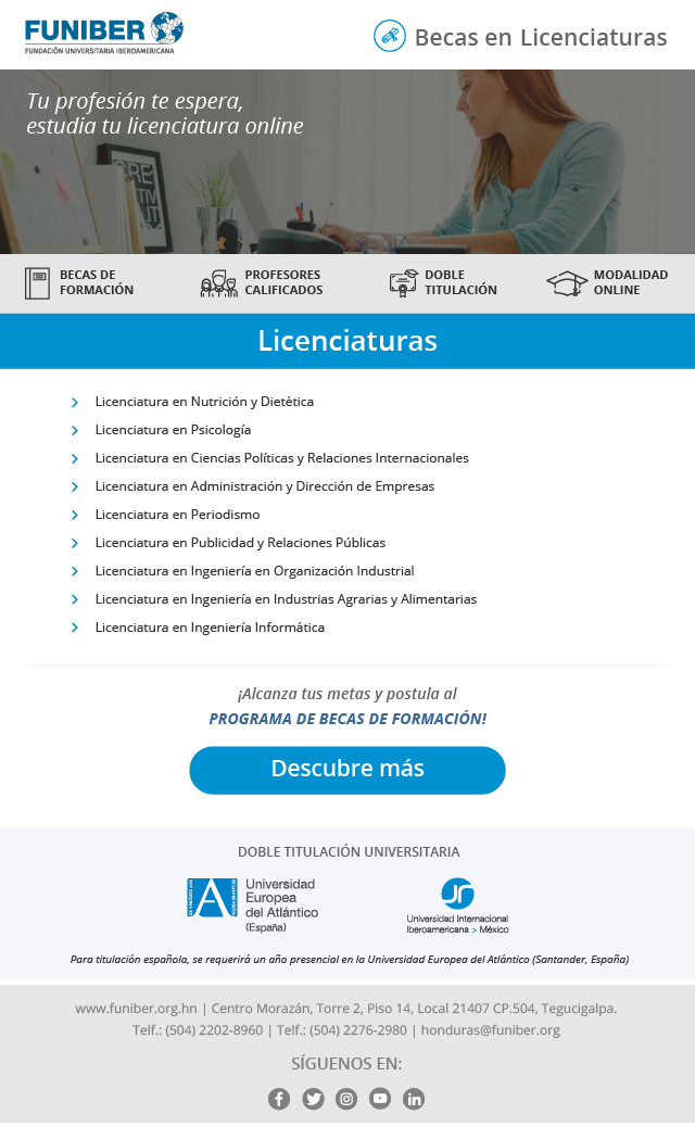 La Fundación Universitaria Iberoamericana (FUNIBER), ofrece un programa de Becas Internacional, para estudiar Másteres, Especializaciones, Doctorados y Licenciaturas a distancia y presenciales con titulación universitaria.